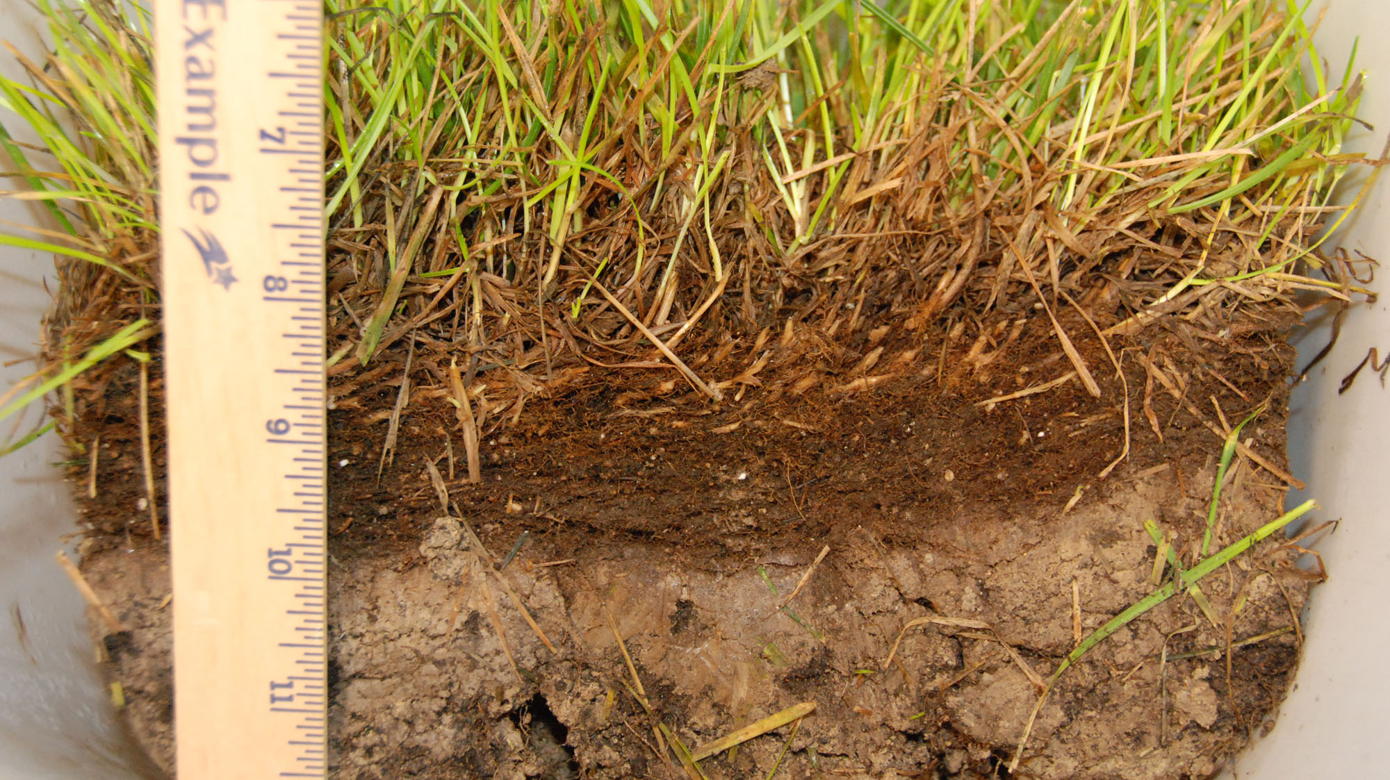A shallow thatch layer up to ½ inch thick actually benefits the lawn, by helping to retain moisture and stabilizing soil temperature. A thatch layer greater than ½ inch thick makes watering difficult, since thatch dries out quickly and is difficult to rewet. Nutrients and water cannot be properly absorbed by the grass roots that tend to grow into this area.